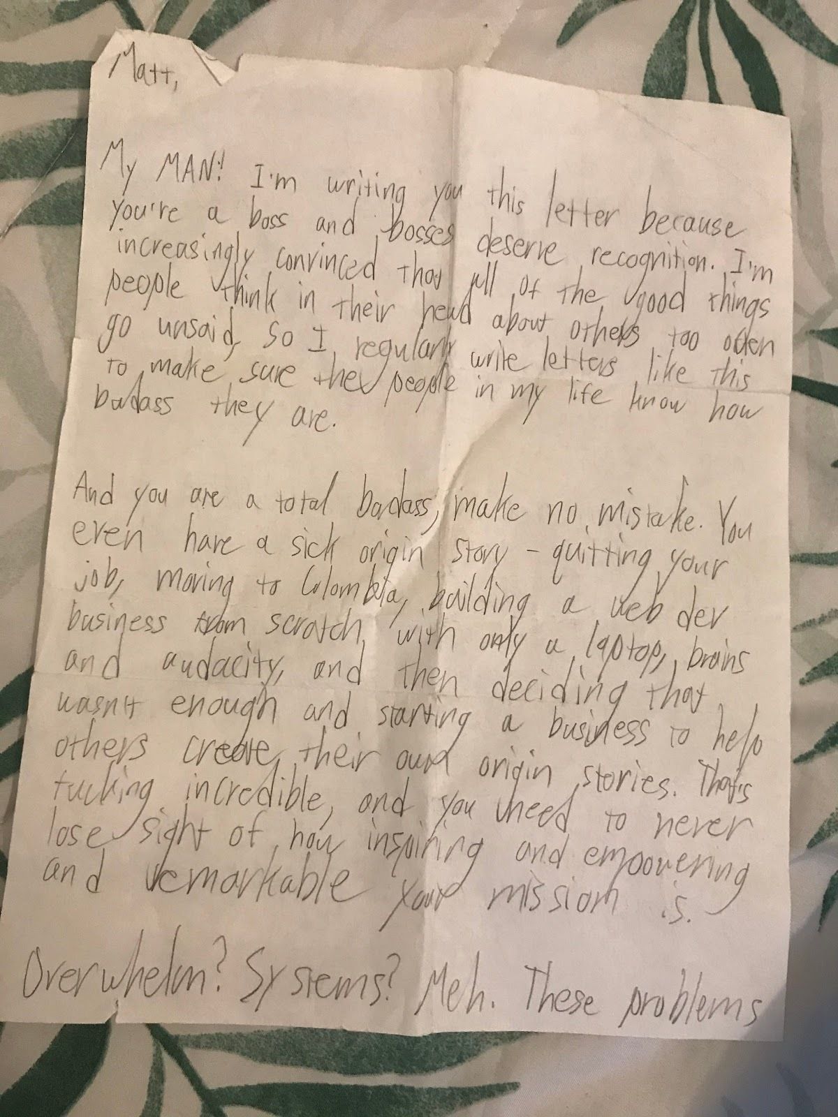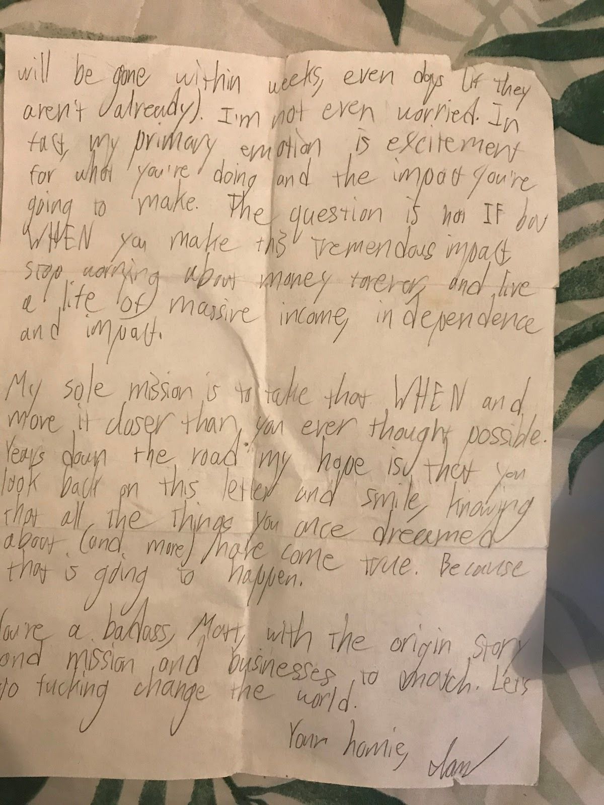 A few months after we started working together, Ian sent me a personal handwritten note sharing how excited he was for our work together and the impact I would have on the world.